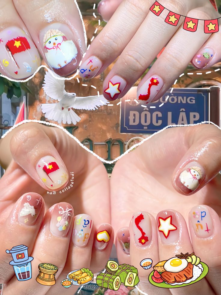 Dành cho những bạn trẻ có tinh thần yêu nước và thích sự độc đáo. Những mẫu nail lấy cảm hứng từ lá cờ đỏ sao vàng hoặc các biểu tượng di sản sẽ là cách tuyệt vời để chào mừng ngày lễ thống nhất đất nước.
